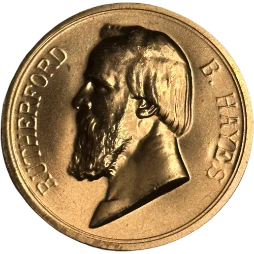 | Obverse description | Bust of Rutherford B. Hayes, facing left, inscription surrounding. |