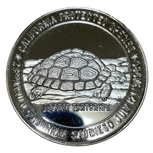 | Надписи аверса | CALIFORNIA PROTECTED SPECIES DESERT TORTORISE *23RD ANNUAL COINARAMA SAN DIEGO JULY 12 & 13, 1980* |