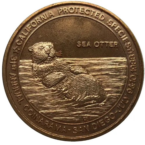 | Leyenda del anverso | CALIFORNIA PROTECTED SPECIES SEA OTTER 31ST ANNUAL COINARAMA - SAN DIEGO - JULY 9 & 10, 1988 |