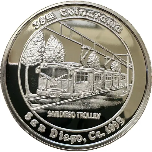 | 表面の銘文 | 38th Coinarama 1077 CS SAN DIEGO TROLLEY San Diego, Ca. 1995 |