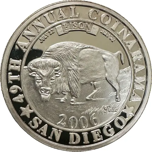 | Obverse lettering | 49TH ANNUAL COINARAMA JULY 22 BISON JULY 23 Pablo 2006 SAN DIEGO |