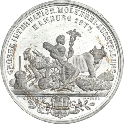 | Obverse lettering | GROSSE INTERNATION. MOLKEREI-AUSTELLUNG // HAMBURG 1877. O.BERGMANN / HAMBURG |