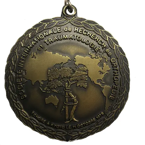 | Надписи аверса | SOCIETE INTERNATIONALE de RECHERCH EN ORTHOPEDIE ET TRAUMATOLOGIE FONDRE A KYOTO LE 11 OCTOBRE 1978 (Translation: International Society for Orthopedic Research and Traumatology Founded in Kyoto, October 11, 1978) |