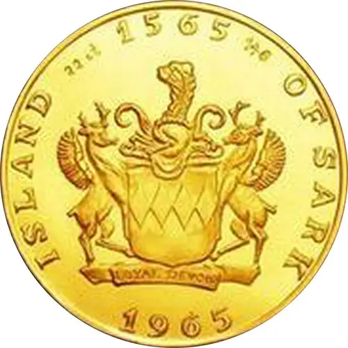 | Reverse description | Coat of Arms of Sibyl Hathaway, the Dame of Sark at the time. Dates and legend around. |