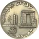 In the center, a replica of a city-coin minted by the Nabatean King Aretas IV (9-40 CE). In the center of the coin, a double cornucopia crossed at its base. The Aramaic inscription between the horns stands for, `Aretas, Shakilat`, the king and his consort. On the rim, the inscription, `Nabataean Coin 9-40 CE`, in Hebrew 3769-3800 and in English below. |