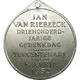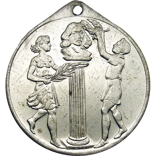 The bust of van Riebeeck on top of a column. To the right a boy placing a wreath on van Riebeeck’s head. To the left a girl bringing a palm fond. Signed: “Z.K.B.” at the base of the column. |