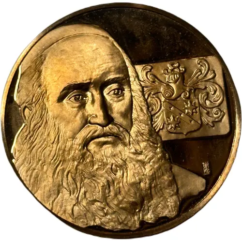 | Reverse lettering | I. ABRAVANEL DISTINGUSHED SCION OF DAVIDIC DYNASTY, LAST OF SPANISH-JEWISH SCHOLAR=STATESMAN. FAMED FOR BIBLE COMMENTARIES 1437-1508 FM |
