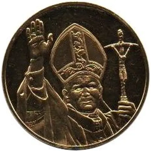 | Obverse description | Pope John Paul II wearing his mitre and making a gesture of blessing. |