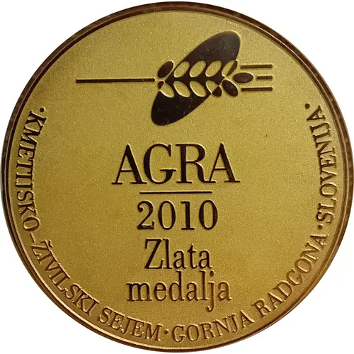 | Opis líce | KMETIJSKO-ŽIVILSKI SEJEM GORNJA RADGONA SLOVENIJA AGRA 2010 Zlata medalja (Translation: Gornja Radgona Agriculture-food fair 2010 Gold medal) |