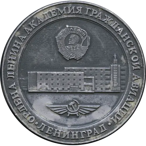 | Obverse lettering | ОРДЕНА ЛЕНИНА АКАДЕМИЯ ГРАЖДАНСКОЙ АВИАЦИИ ЛЕНИНГРАД (Translation: Order of Lenin Academy of Civil Aviation Leningrad) |