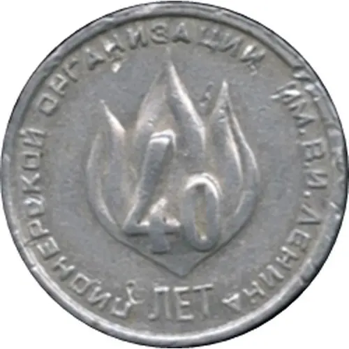 | Obverse lettering | ПИОНЕРСКОЙ ОРГАНИЗАЦИИ ИМ. В.И. ЛЕНИНА 40 ЛЕТ (Translation: 40 YEARS OF PIONEER ORGANIZATION NAMED AFTER V.I. LENIN) |