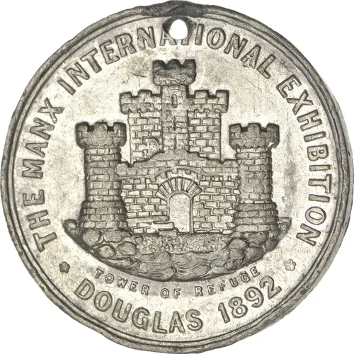 | نوشتههای روی مدال | THE MANX INTERNATIONAL EXHIBITION TOWER OF REFUGE • DOUGLAS 1892 • |