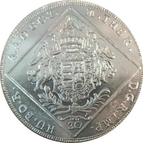 | Opis líce | M.THER. D.G.R.IMP. HU.BO.R. A.A.D.B.C.T. 30 (Translation: Maria Theresa, by the Grace of God, Empress of the Romans, Queen of Germany, Hungary, and Bohemia.) |