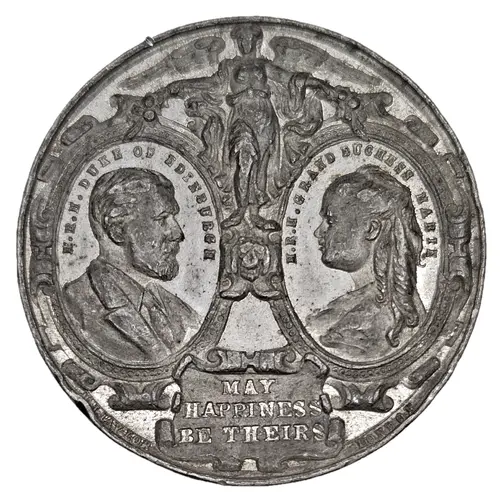 | Obverse lettering | H.R.H. Duke of Edinburgh H.R.H. Grand Duchess Marie MAY HAPPINESS BE THEIRS W.J. TAYLOR LONDON |