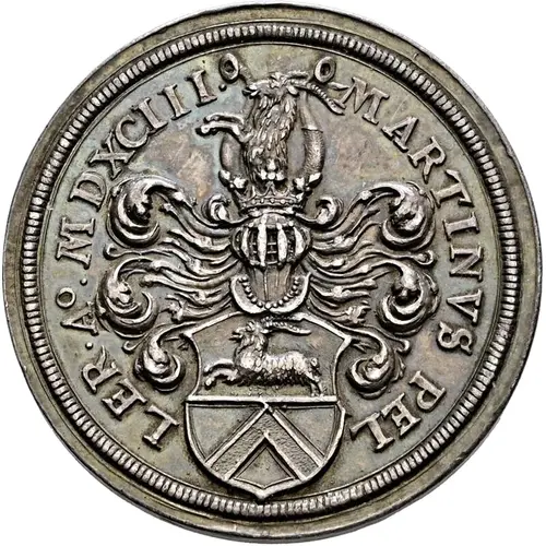 | Obverse lettering | MARTINVS PEL LER · A° · MDXCIII · |