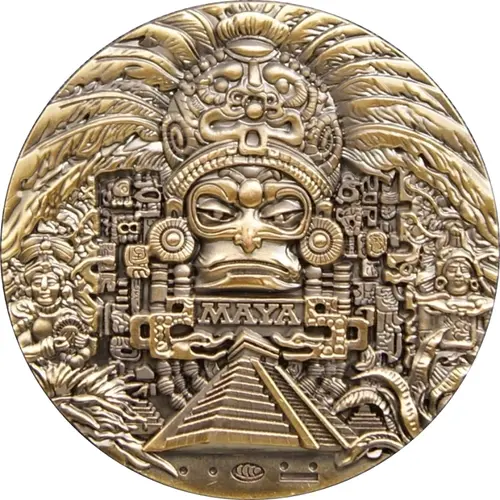 | Obverse description | The Aztec Pyramid, Mayan mask. |