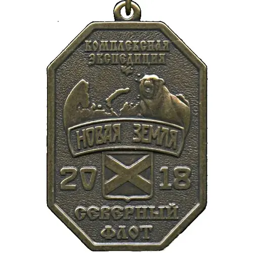 | Obverse lettering | КОМПЛЕКСНАЯ ЭКСПЕДИЦИЯ НОВАЯ ЗЕМЛЯ 20 18 СЕВЕРНЫЙ ФЛОТ (Translation: COMPLEXEXPEDITION Novaya Zemlya (NEW EARTH) 20 18 NORTHERN FLEET) |