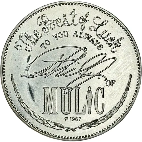 | Obverse lettering | The Best of Luck TO YOU ALWAYS Phil J. OF MULIC FM 1967 |
