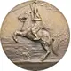 | Reverse description | Battle scene with man holding up a flag on a rearing horse left. Advancing soldiers in the background. |