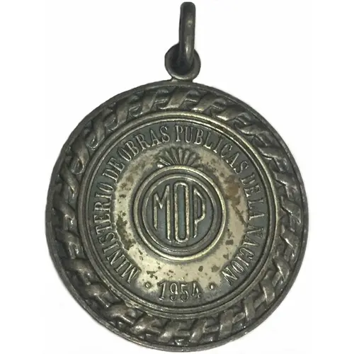 | Obverse lettering | MINISTERIO DE OBRAS PUBLICAS DE LA NACION MOP ·1954· (Translation: Ministry of public works of the nation MOP ·1954·) |