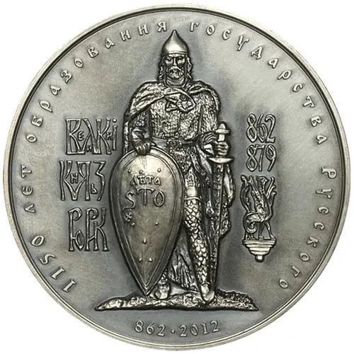| Obverse lettering | 1150 лет образования государства Русского ВЕЛИКИI КНЯЗЬ РЮРИК 862 879 862∙2012 (Translation: The 1150th anniversary of the founding of the Russian state Grand Prince Rurik) |