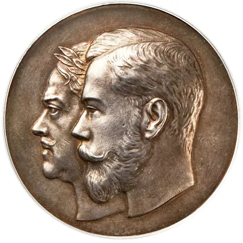| Obverse description | Conjoined busts of Nicholas II and Peter I. |