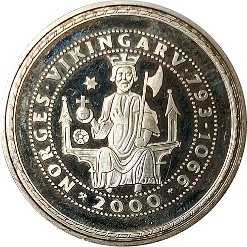 | Leyenda del anverso | NORGES·VIKINGARV·793-1066 999S ⚒ 2000 (Translation: Norwegian Viking heritage.) |