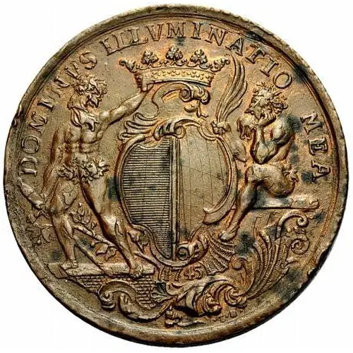 | Opis líce | DOMINVS ILLVMINATIO MEA 1745 • I • B • (Translation: The Lord is my light.) |