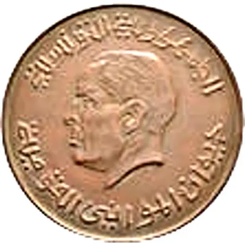 | Obverse description | Head of Habib Bourguiba facing left. Arabic legends around |