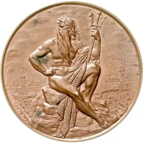 | Obverse description | Neptune seated on rock, lighthouse and ships in background. |