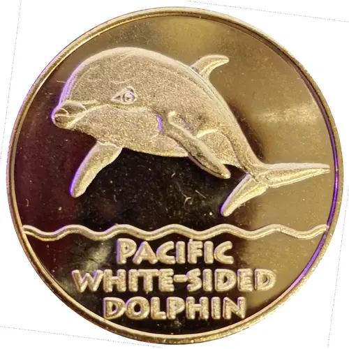 | Obverse description | Pacific White-Sided Dolphin facing left, with lettering below it in water. |