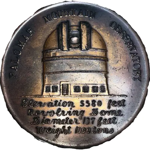 | Obverse lettering | PALOMAR MOUNTAIN OBSERVATORY Elevation 5580 feet Revolving Dome Diameter 137 feet Weight 1000 tons |