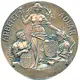 Greek goddess Athena surrounded below by two male figures. One holds shield featuring US stars and stripes, while the other holds shield featuring three crowns (the national emblem of Sweden). |