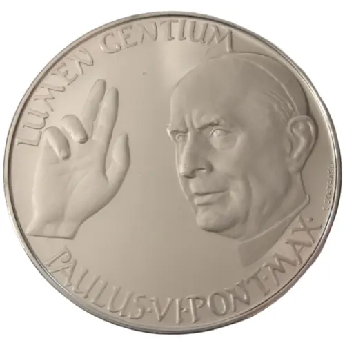 LUMEN GENTIUM PAULUS VI PONT MAX (Translation: Light of the People Paul 6th Supreme Pontiff) |