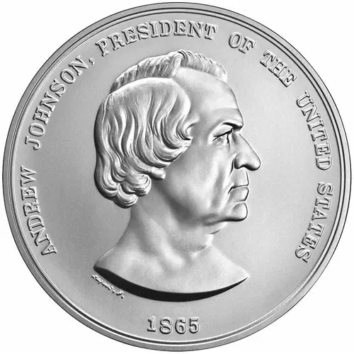 Bust of Andrew Johnson, facing right, inscription surrounding. |