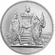 An American Indian clasping the hand of Columbia. Between them sits a bust of Washington and the inscription “PEACE.” Around them are elements symbolic of American life, both native and industrial. |