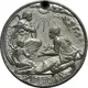 | Obverse description | Figure of Peace seated facing right with folded wings, holding a dove to her breast, to her side a cherub holding an olive branch. Mars, the warrior, kneels facing left, with a shield across his leg, and offering a sword as a token of surrender. Radiant sun and clouds above, scroll supported by doves below. |