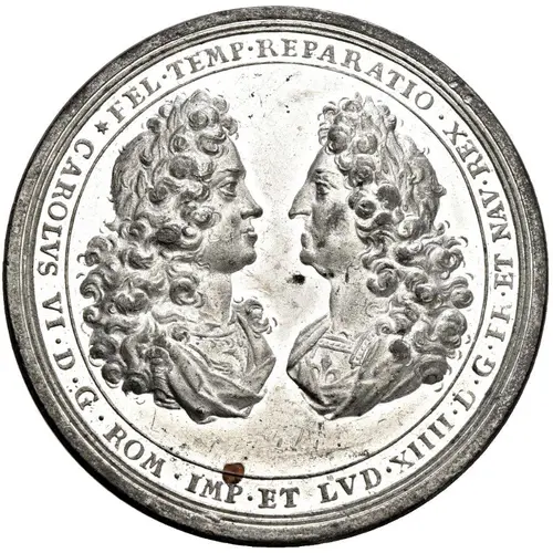 | Obverse description | Laureate bust of Emperor Charles VI facing right. Laureate bust of King Louis XIV facing left, wearing cuirass with fleur de lys. |