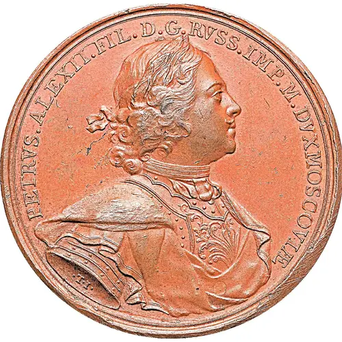 | Ön yüz açıklaması | Laureate and armored bust of Peter I right. |