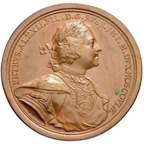 Descrição do reverso Crowned woman holding a shield with arms of Russia.