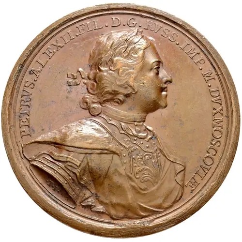 | Descripción del anverso | Laureate and armored bust to right in a mantle. |