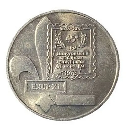 | Obverse lettering | 1933 - 1978 45e UPM ANNIVERSAIRE DE L`UNION PHILATÉLIQUE DE MONTRÉAL 1978 EXUP • XI |