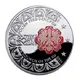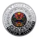 Poland coat of arms painted in colour in centre right. Surounded by stars of the European Union flag, along the medal rim. The left 9 stars of the star circle covered by an artistic motive reminiscent of a colonnade. |