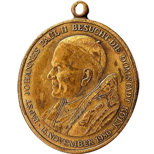 | Obverse lettering | PAPST JOHANNES PAUL II BESUCHT DIE DOMSTADT KÖLN · 15. NOVEMBER 1980 · |