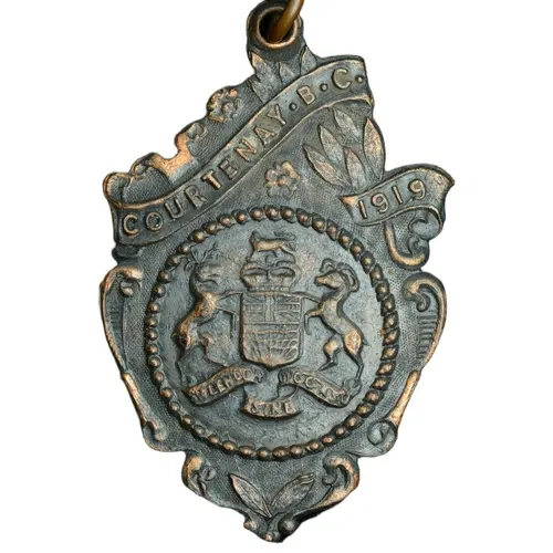 | Obverse description | Arms of British Columbia within beeded circle, Scrolls above, laurel above and below |