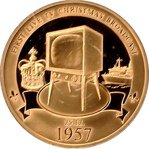 | Obverse lettering | FIRST LIVE TV CHRISTMAS BROADCAST 25.12. 1957 |