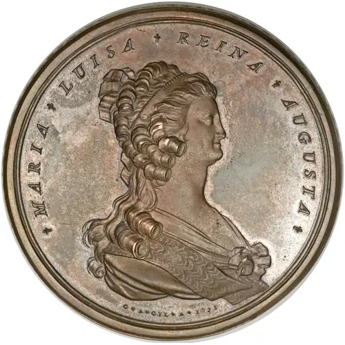 | Descrição do anverso | Queen Maria Luisa facing Right |