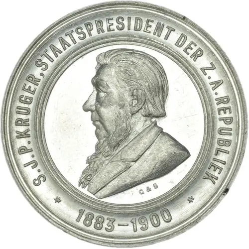 Chữ khắc mặt trước S.J.P. KRUGER, STAATSPRESIDENT DER Z.A.REPUBLIEK 1883-1900