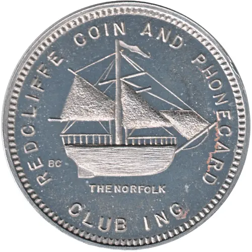 | Obverse lettering | REDCLIFFE COIN AND PHONECARD CLUB INC THE NORFOLK BC |