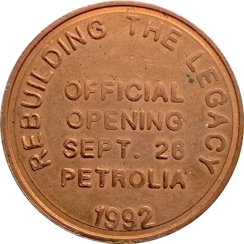 | 表面の銘文 | REBUILDING THE LEGACY OFFICIAL OPENING SEPT. 26 PETROLIA 1992 |